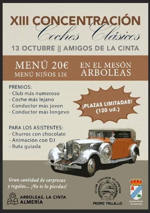 Classic Vehicle Route (They will depart from the Municipal Sports Center and travel through the main streets and avenues of the town.) -Exhibitions, sales and free exchange during both days. BAR SERVICE THROUGHOUT THE WEEKEND
